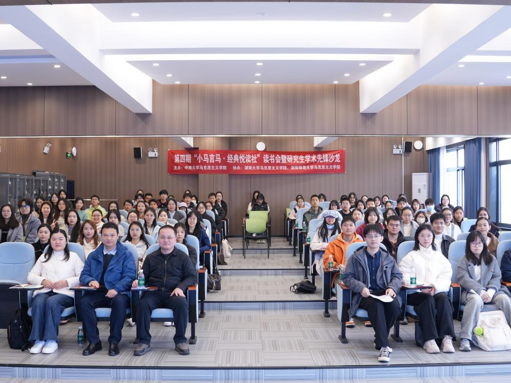2025年12月20日上午,我院联合湖南大学、湖南师范大学yl6809永利官网集团,共同举办第四期“小马言马·经典悦读社”读书会暨研究生学术先锋沙龙。活动围绕“‘人的本质’的当代阐释:马克思人学理论与时代新人培育的实践向度”展开阅读研讨。我院副院长胡栋材、学工办主任肖艳玲、教师代表代砚春、徐艳兰,以及来自三所高校的100余名学生代表共同参与本次活动。