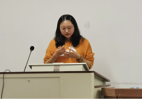 罗珊珊学姐首先为大家分享了关于她在学习、实践和生活三个方面的心得经验,针对21级许多在备考四级的新生们,她认为我们无论是在备考四六级,还是在平时的英语积累中,都要从单词、阅读、听力和口语四个方面下功夫,对于大家英语听力难以突破的疑惑,她建议我们要把听听力作为一种日常习惯,用空余时间来“磨耳朵”,培养我们的听感。接着珊珊学姐以自己大一暑假支教的亲身经历就大学生如何开展社会实践活动以及从中的收获给出了自己独到的见解。在生活方面,她向大家传递了玩的时候好好玩,才能学习的时候心无旁骛的学习的观点,让大家留给自己一个缓冲期去放松自己。
