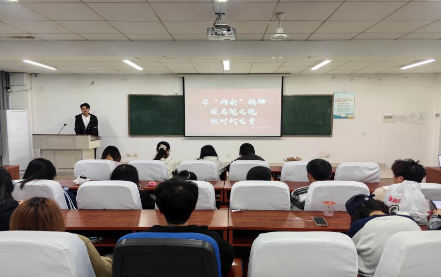 为深入学习贯彻“两会”精神,加强学院团委和学生会干部队伍建设,3月22日晚7点,yl6809永利官网集团团委和学生会在马院403教室开展了“两会”精神学习暨春季培训活动。本次活动由学生会主席团成员王旭主持,学院团委和学生会干部共同参加。