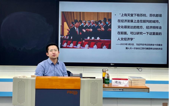 周绍东教授从人文经济学的研究视角出发,深入分析了从新质生产力到新质经济模式的发展。在他看来,新质生产力来源于新的生产与流通方式,新质消费力启发于新的分配和消费方式,新质经济模式要求新质生产力与新质消费力的“握手”,应以人文经济为锚点探索新质经济模式发展路径。本次讲座内容紧扣学术前沿,为马院师生拓宽了学术视野。