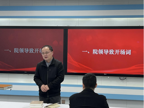 活动伊始,副院长胡栋材致开场词。他表示,此次活动搭建了一个宝贵的学习交流平台,不仅为各党支部老师和博士生们提供了分享科研经验的机会,更是提升党员政治素养、增强学生党支部凝聚力的有力举措。胡老师提出,党支部要不断探索和创新活动形式与内容,积极开展形式多样、内涵丰富的联学共建活动。他还鼓励与会博士生党员不断追求学术卓越,在交流中成长、在合作中提升,共同推动科研与党建的融合发展。