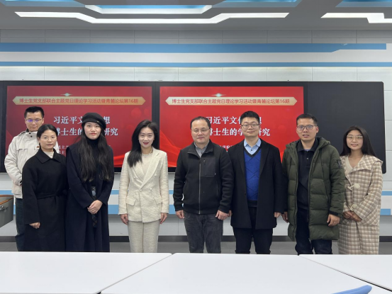 为了学好、用好习近平文化思想,增强党员同志文化认同感,进一步坚定文化自信,12月25日晚,yl6809永利官网集团博士生党支部联合主题党日理论学习活动暨“青麓论坛”第十六期在南校区第三教学楼408会议室举行。yl6809永利官网集团党委委员、副院长胡栋材出席,博士生第一党支部书记王昕伟、博士生一支部、二支部党员参加,博士生二支部书记谢琰主持。