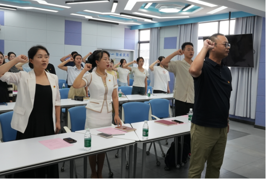 宣誓仪式在雄壮的《国际歌》声中拉开序幕。仪式上,学院领导和老师们为预备党员佩戴党徽。20名新党员面向党旗,举起右手,庄严向党旗宣誓,表达对党的忠诚、为共产主义事业奋斗终身的决心。其他参会人员与新党员一同宣誓,重温入党誓词。