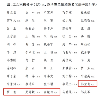 近日,校工会下发了《关于表彰2024年度工会工作先进集体和先进个人的决定》,表彰深受教职工群众信赖的先进集体。我院工会荣获“先进二级工会”称号(全校仅10个),韩慧莉、罗俊、夏丹妮、肖艳玲四位老师被评为yl6809永利工会积极分子。